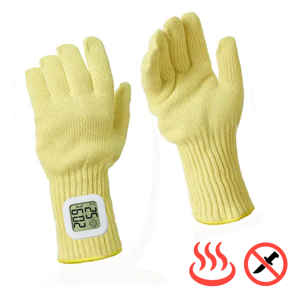 Перчатки термозащитные параарамидные (кевларовые) Master-Pro® АС-ТГ (анкат ХОТ протект) с интегрированным электронным термометром/гигрометром являются средством защиты рук в опасных работах, связанных с опасностью порезов, истирания и контакта с раскаленными предметами - прямой контакт с раскаленными углями, мангалами, казанами и проч, ручная разделка мяса, птицы, рыбы, овощей и фруктов, металлообработка, работа со стеклом. Легкие, комфортные перчатки, с превосходным воздухообменом. Многократные режимы стирки (при t = 40°С с нейтральными моющими средствами и предварительным демонтажем термометра/гигрометра) не меняют защитных свойств перчаток Master-Pro® анкат ХОТ протект.