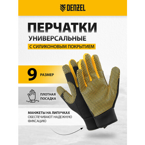Универсальные перчатки Denzel 67999 размера 9, с силиконовым нанесением, предназначены для защиты кожи рук от механических повреждений. Используются во время слесарных и столярных работ.