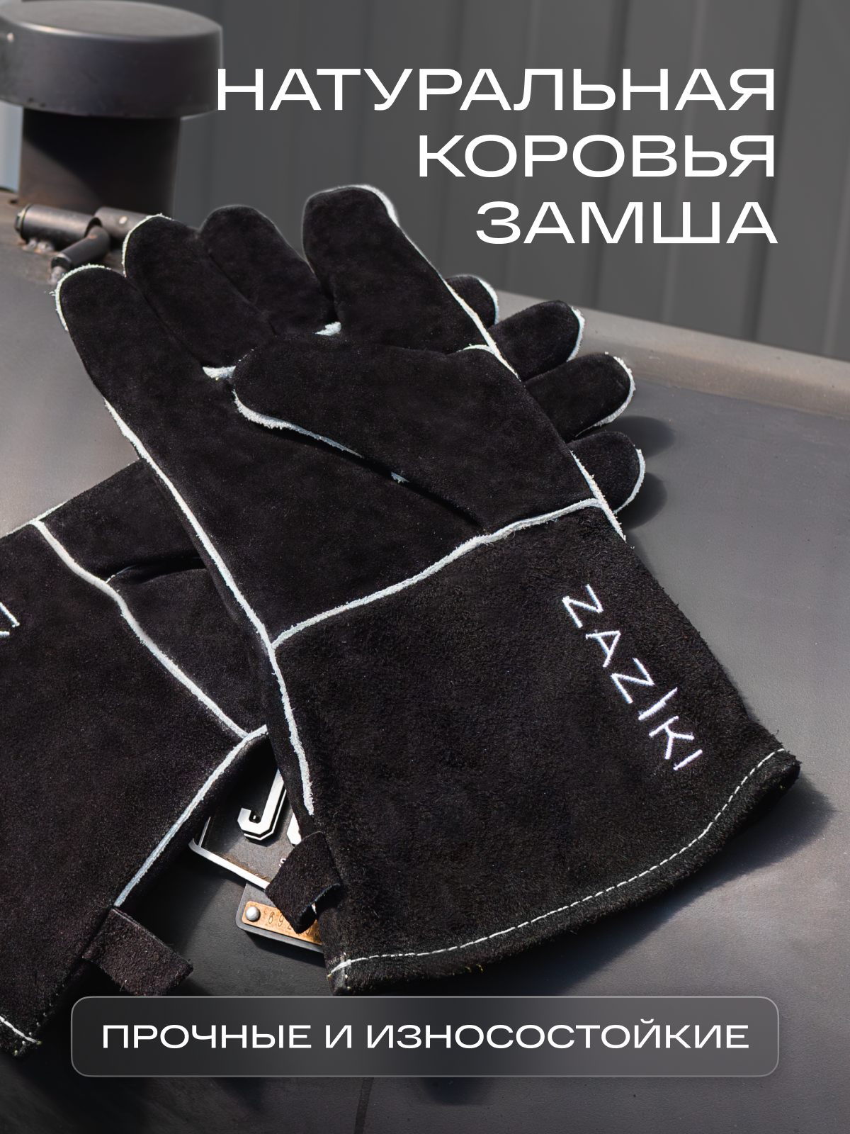 Купить Перчатки жаропрочные Zaziki, огнеупорные термостойкие для гриля и барбекю, черные с доставкой по всей России.