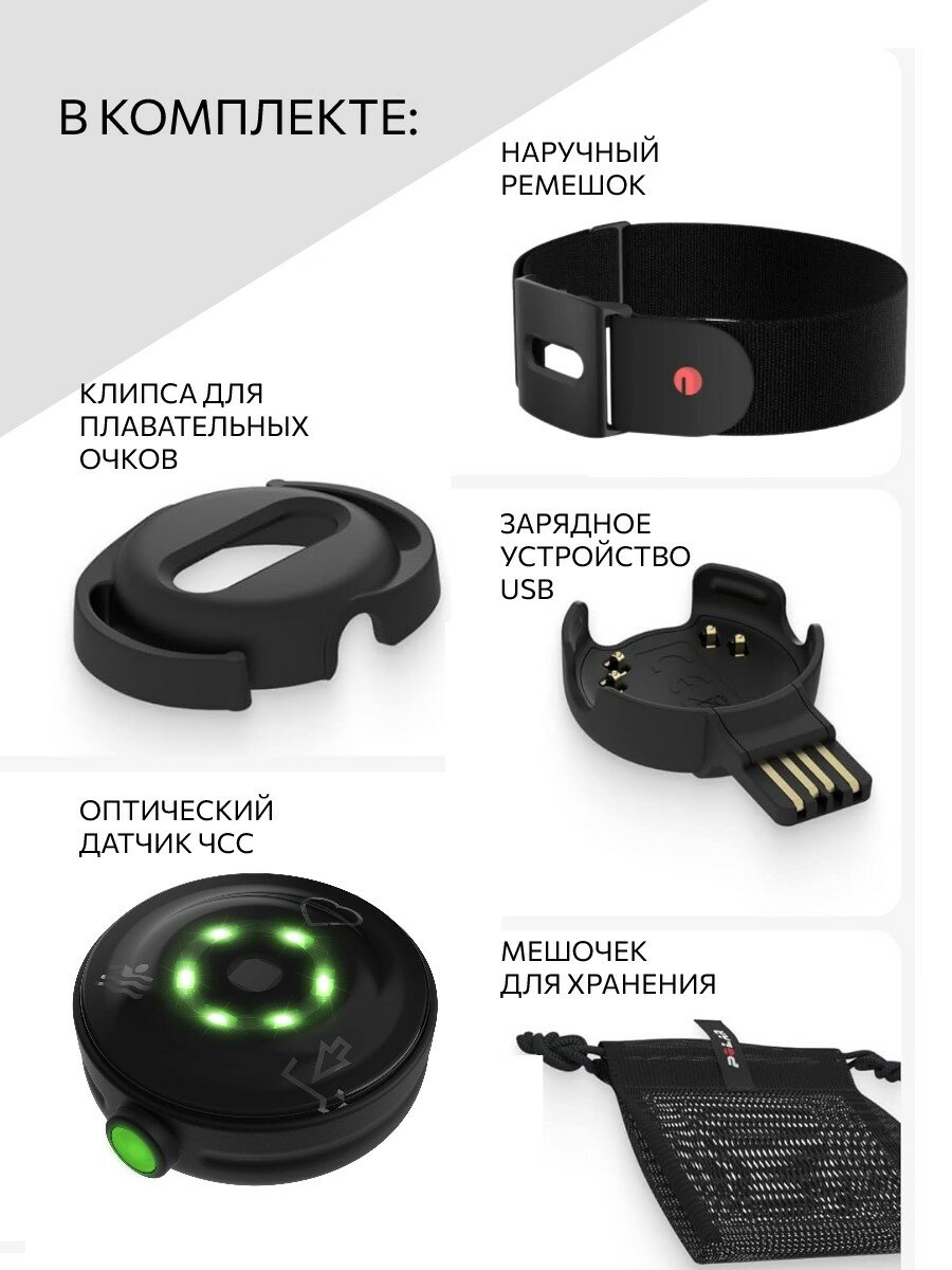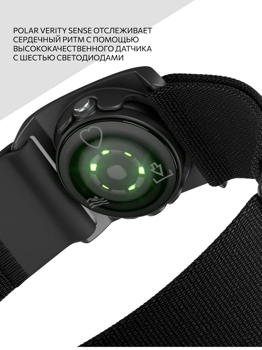 Polar Verity Sense — это универсальный и высококачественный оптический датчик сердечного ритма, который измеряет частоту сердечных сокращений на руке или виске. Polar Verity Sense предлагает хорошую альтернативу нагрудному ремню для измерения пульса и датчику пульса на запястье для измерения частоты сердечных сокращений. Вы можете использовать его на наручном ремне, который входит в комплект изделия, или на держателе ремня для очков для плавания, или, в качестве альтернативы, вы можете надеть его в любом месте, где он плотно прилегает к вашей коже. Polar Verity Sense обеспечивает полную свободу движений и подходит для многих видов спорта. В довершение ко всему, PolarVerity Sense записывает частоту сердечных сокращений, расстояние, скорость и количество кругов, когда вы плаваете в бассейне. Вы можете сохранить свою тренировку во внутренней памяти и впоследствии передать данные о тренировке на свой телефон, или вы можете подключить датчик сердечного ритма к совместимому устройству и контролировать свой сердечный ритм в режиме реального времени во время тренировки. Комфорт: Polar Verity Sense удобно носить и обеспечивает полную свободу движений, поскольку он не надевается на запястье. Наденьте его на руку, прикрепите к очкам для плавания или плотно прижмите к коже под облегающей одеждой. Удобство: Polar Verity Sense действительно прост в использовании, потому что у него всего одна кнопка. Включите датчик сердечного ритма и поместите его на руку или висок, и вы сразу готовы начать тренировку. Возможности подключения: Bluetooth® и ANT+ позволяют подключать Polar Verity Sense к нескольким различным устройствам. Вы можете установить два одновременных соединения Bluetooth. Универсальность: Polar Verity Sense подходит для самых разных видов спорта. Вы можете либо контролировать свой сердечный ритм в режиме реального времени с устройства или приложения, подключенного к датчику сердечного ритма, либо сохранить свою тренировку и перенести данные на свой телефон позже. Лучший друг пловца: когда вы носите Polar Verity Sense в креплении ремешка для очков на виске, датчик автоматически записывает частоту сердечных сокращений, количество кругов, расстояние и скорость в бассейне. Технические характеристики: ВесДатчик 5 г, держатель 3 г, наручный ремешок и держатель 12 г, клипса для плавательных очков 2 г, зарядное устройство 4 гВысота9,6 ммДиаметр30,0 ммНаручный ремешокРазмер M–XXL, подходит для машинной стиркиКлипса для плавательных очковПодходит для большинства плавательных очков. СовместимостьМобильные устройства iOS на базе iOS 12 или новее; мобильные устройства на базе Android с поддержкой Bluetooth 4.0 и Android 6 или новее. Дополнительные сведения см. Здесь . ОбновленияЧерез приложение Polar FlowПамять16 МБ, до 600 часов тренировокВремя работы от аккумулятораДо 20 часов тренировокДиапазон трансляцииДо 150 м. Если вы используете Polar Verity Sense без наручного ремешка, закрепите датчик так, чтобы он плотно прилегал к коже, а для наилучшего диапазона трансляции поместите его в держатель. Возможности подключенияBluetooth с низким энергопотреблением, одновременное подключение к двум устройствам. ANT+. ВодостойкостьВодостойкость — 50 мТехнологии, использующие датчикиОптическое отслеживание ЧСС, акселерометр, гироскоп, магнитометр.