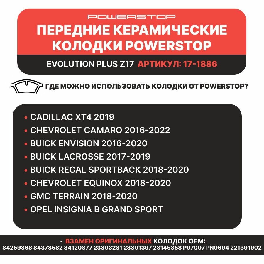 Передние керамические тормозные колодки POWERSTOP Evolution Z17 CADILLAC, CHEVROLET, BUICK, OPEL: сравнение цен, характеристики, фото, актуальное наличие и цены.