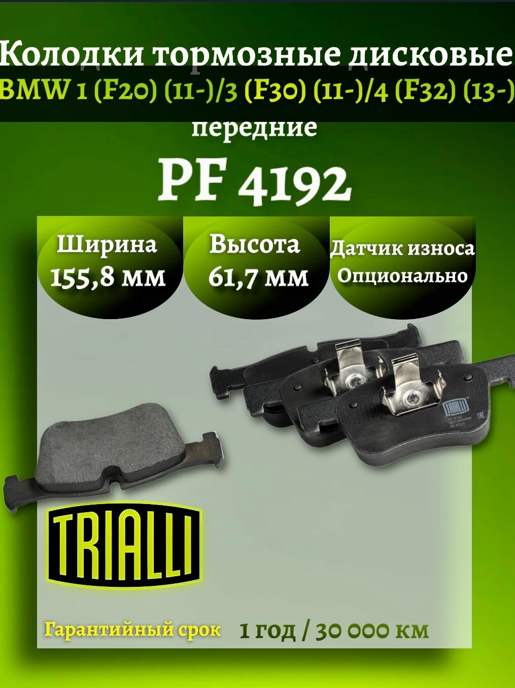 Передние тормозные колодки BMW 1 F20/3 F30/4 F32 PF 4192 с низким содержанием металла, чёрные: сравнение цен, характеристики, фото, актуальное наличие и цены.
