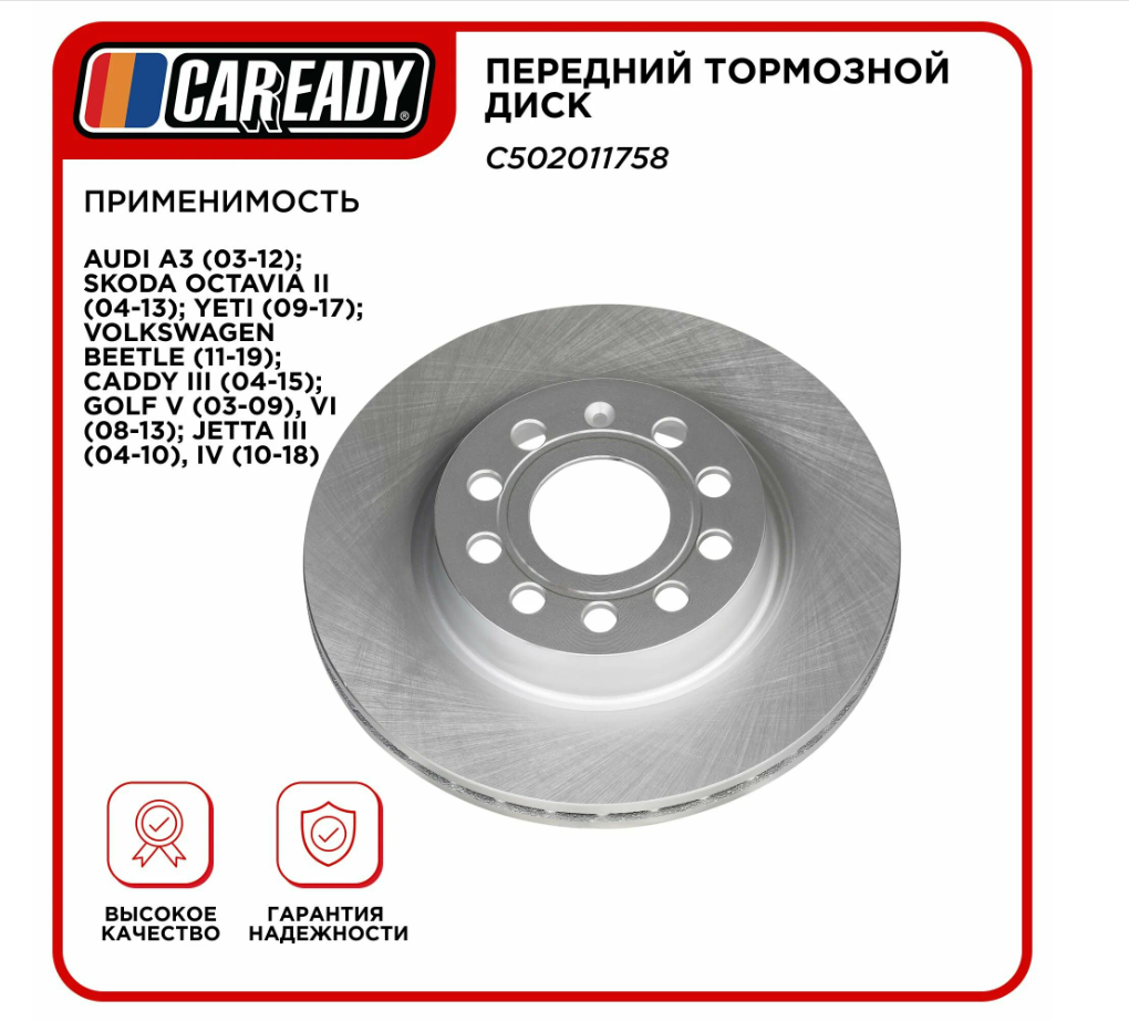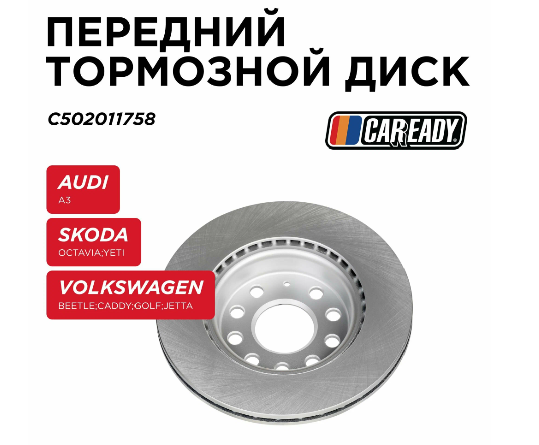 Купить Передний тормозной диск для AUDI A3, SKODA OCTAVIA II, YETI, VOLKSWAGEN BEETLE CADDY III, GOLF V, VI, JETTA III IV, CAREADY арт. C502011758 с доставкой по всей России.