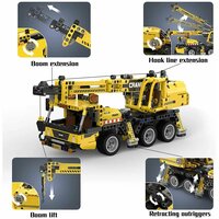Набор состоит из 658 элементов и позволяет собрать кран самостоятельно . Транспортное средство было создано с особым вниманием к деталям , которые обеспечат невероятное удовольствие. Он оснащен 6 резиновыми колесами , которые позволяют ему передвигаться по различным поверхностям. Автомобиль имеет желтый кузов с черными элементами. Он имеет подвижные элементы — выдвижной рычаг с ручкой , поднимающейся на разную высоту, выдвижной трос с крюком , кабину и стрелу, вращающиеся на 360 градусов , а также открывающуюся дверь кабины .