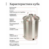 - объём куба с учётом купольной крышки 70 литров, объём котла 68 литров