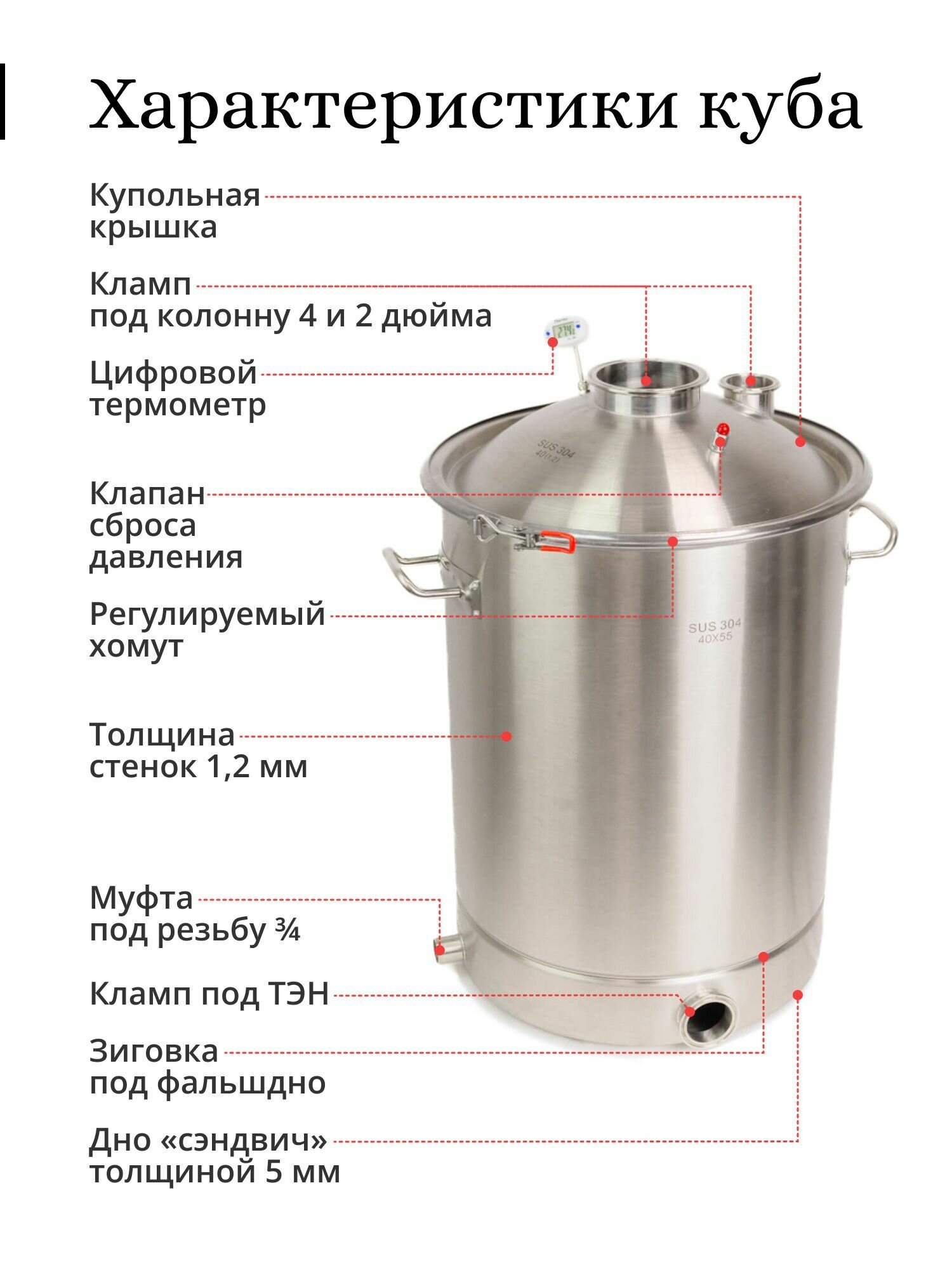 Перегонный куб 70 литров, 40×55 см