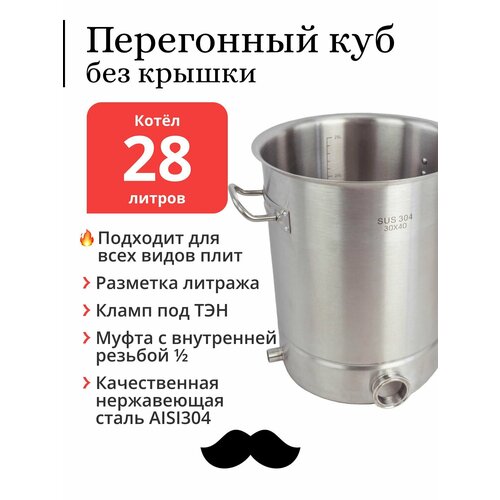 Котёл 28 литров, 30x40 см. Универсальный в использовании, можно использовать как перегонный куб, котел сусловарочный и кастрюлю для приготовления пищи.