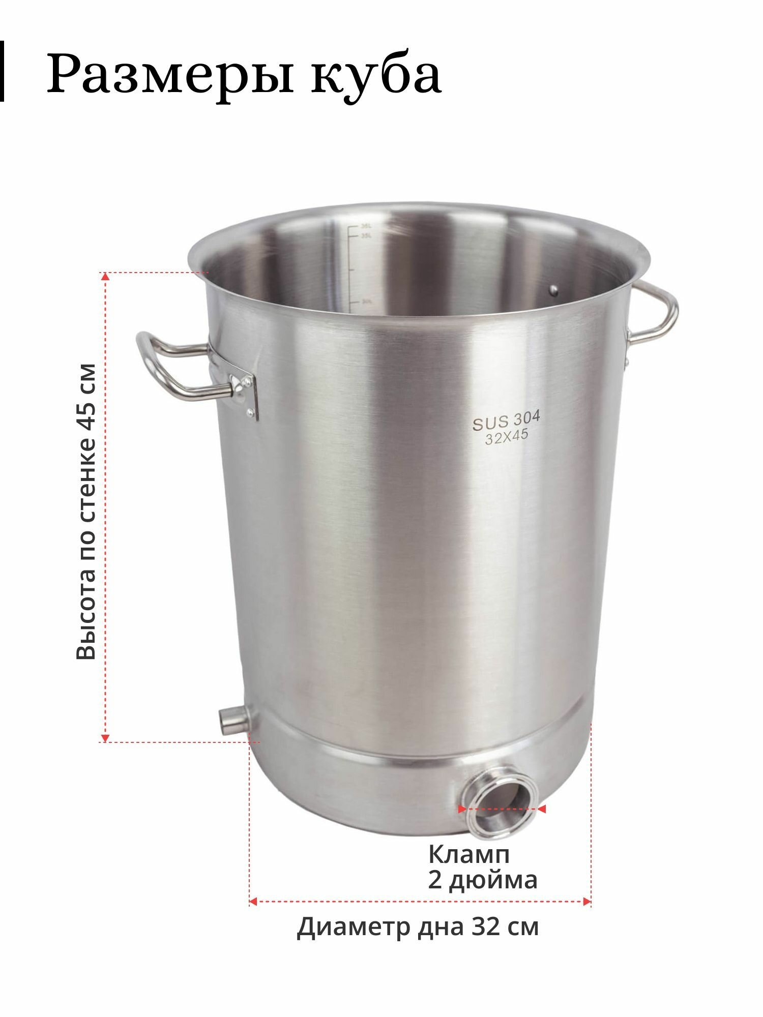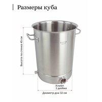 Котёл 36 литров, 32×45 см. Универсальный в использовании, можно использовать как перегонный куб, котел сусловарочный и кастрюлю для приготовления пищи.