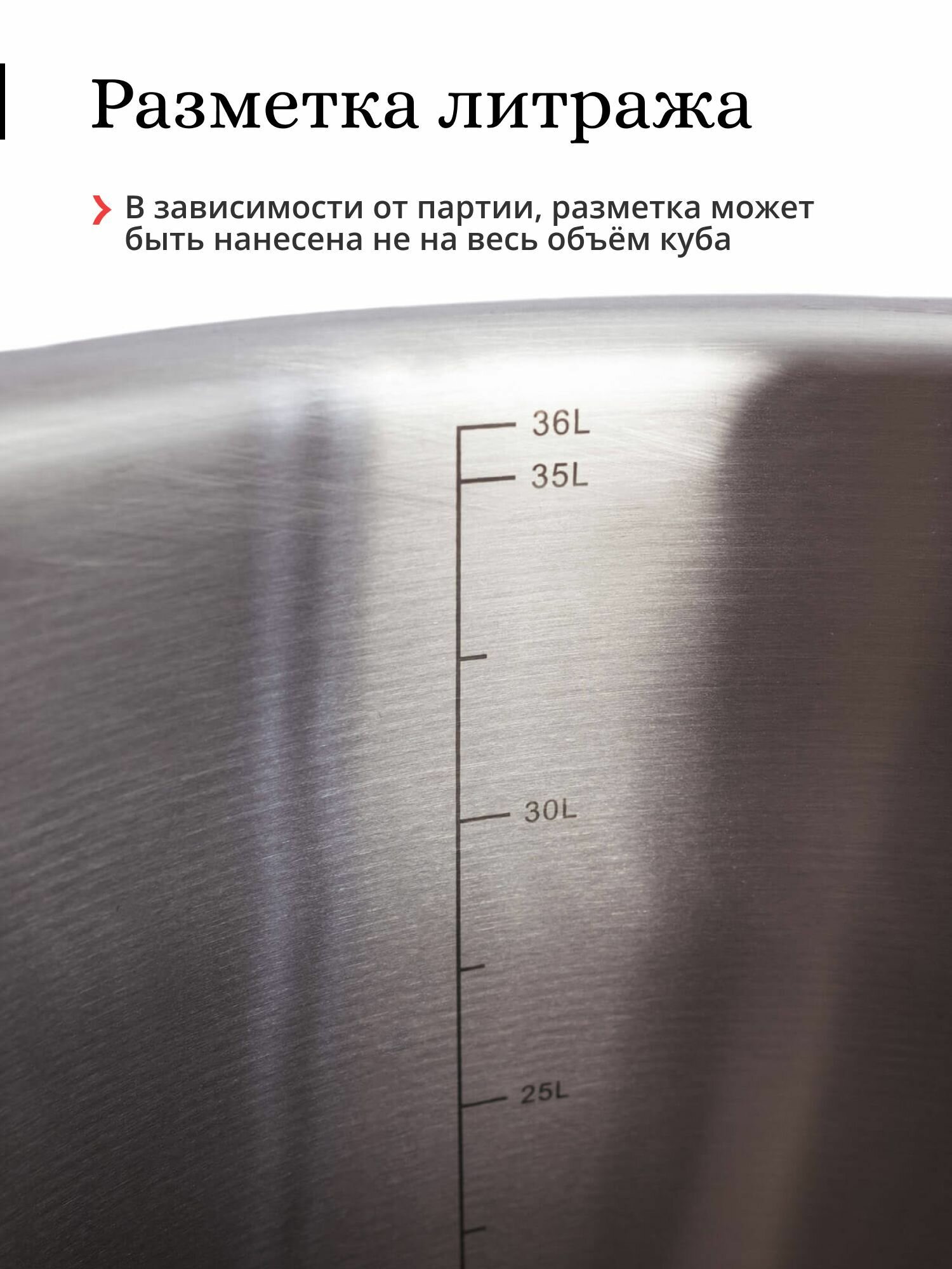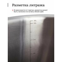 - Разметка литража до отметки 35 литров.