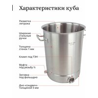 - Стенки из пищевой нержавеющей стали толщиной 1 мм.