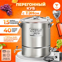 Купить Перегонный куб «Добрый Жар» 40 литров с ТЭН, крышка с клампом 1,5 дюйма с доставкой по всей России. Перегонный куб «Добрый Жар» 40 литров с ТЭН, крышка с клампом 1,5 дюйма: сравнение цен, характеристики, фото, актуальное наличие и цены.