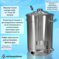 Купить Перегонный куб люкс 50 литров, 40х40 см, нержавеющая сталь 304 AISI, кламп под ТЭН, выход в крышке 2 дюйма с доставкой по всей России.
