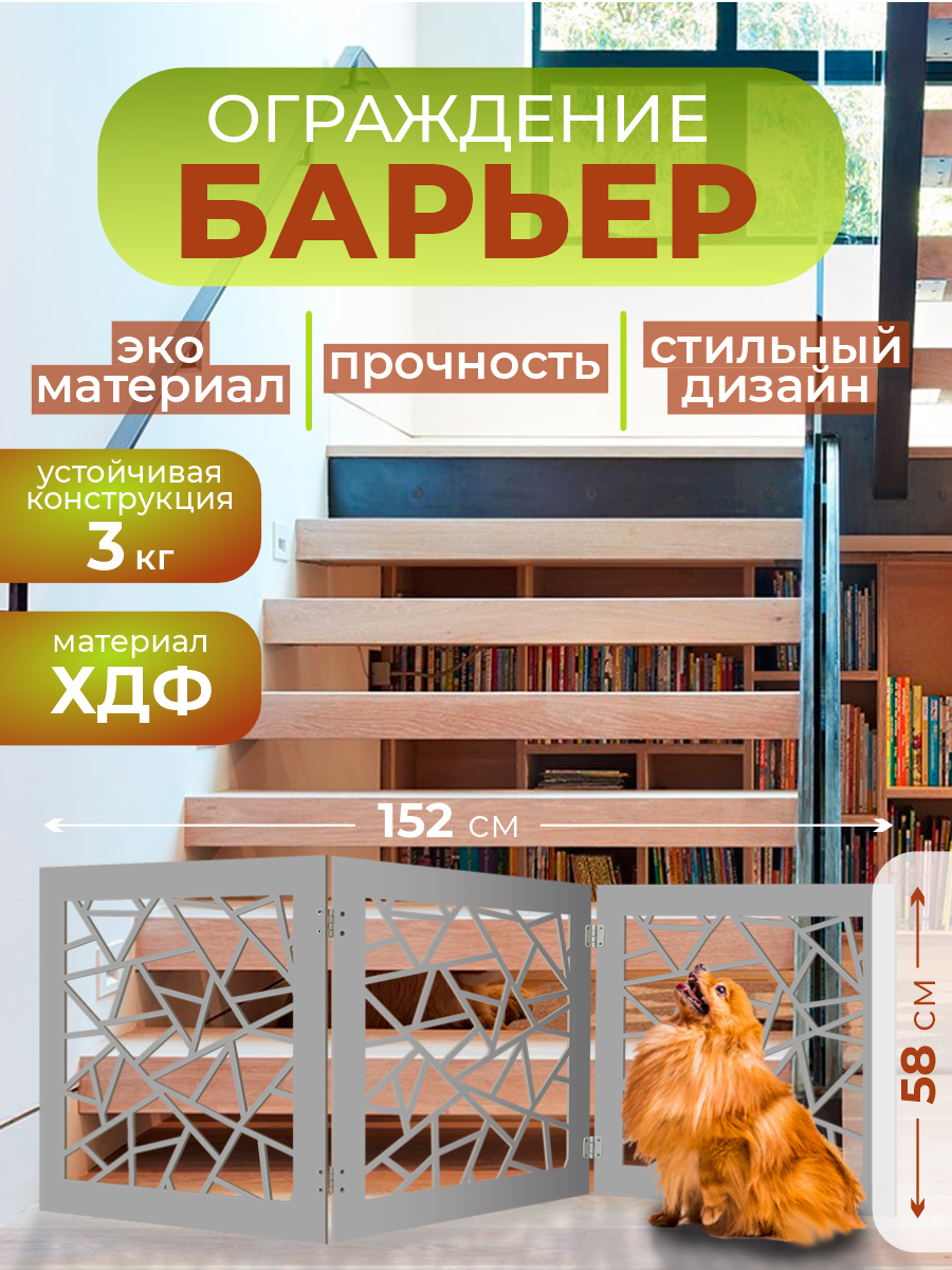 Купить Перегородка для собак в квартиру барьер ограждение 152х58 см. Серая Калейдоскоп с доставкой по всей России.