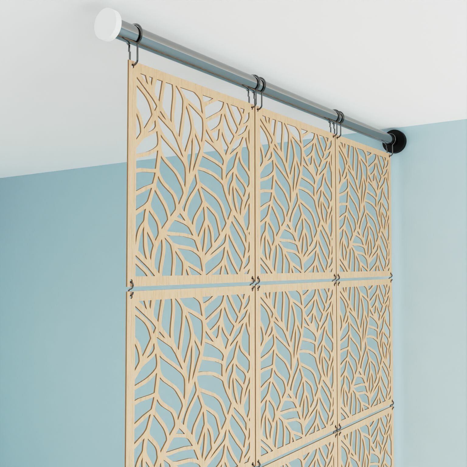 Перегородка для зонирования комнаты. Перегородка модульная подвесная. Для подвесных потолков. Размер: 250 см * 40 см, 6 панелей + комплект для настенного крепления. Цвет: бежевый.