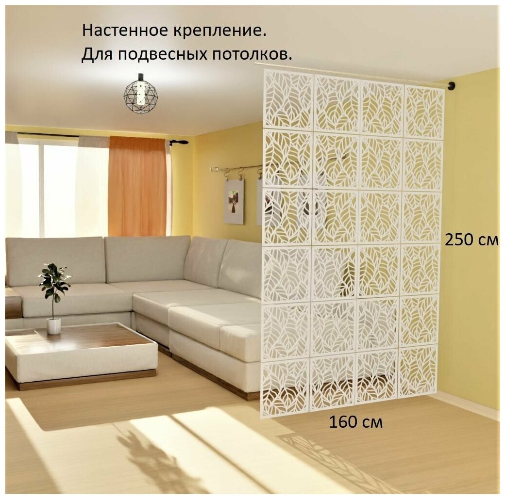 Перегородка для зонирования комнаты. Перегородка подвесная . Для подвесных потолков. Размер 2500* 1600 мм- 24 панели +комплект для настенного крепления.