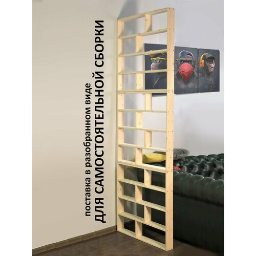 Представляем вам нашу элегантную и практичную вертикальную деревянную перегородку, состоящую из трех модулей общей высотой 240 см. Каждый модуль имеет размеры 80 см в высоту, 80 см в ширину и 9 см в глубину и поставляется в разобранном виде. Изготовленная из массива натуральной древесины сосны, эта перегородка не только долговечна, но и придает элегантность вашему интерьеру. Если вы хотите создать укромный уголок для чтения, разделить гостиную и столовую или просто добавить дополнительный уровень приватности в ваш дом, наша деревянная перегородка - отличный выбор.