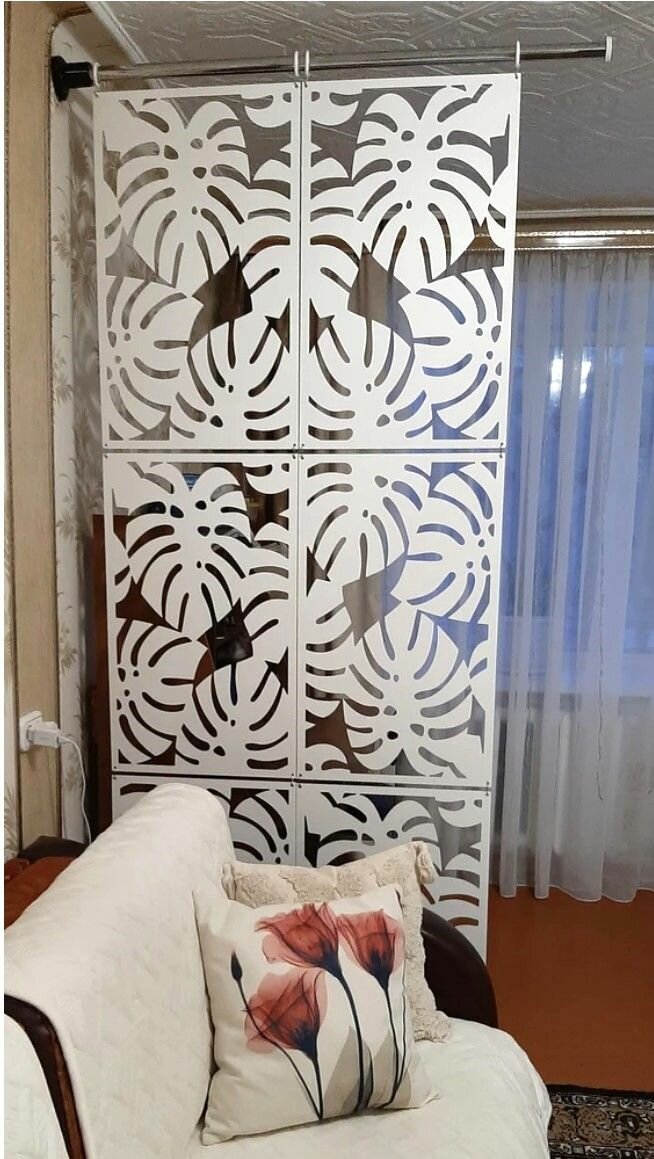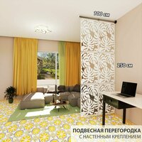 Перегородка модульная подвесная для зонирования комнаты . Материал ХДФ . Подходит для помещений с подвесными потолками. Ширина 100 см — 6 панелей +комплект для настенного крепления.
