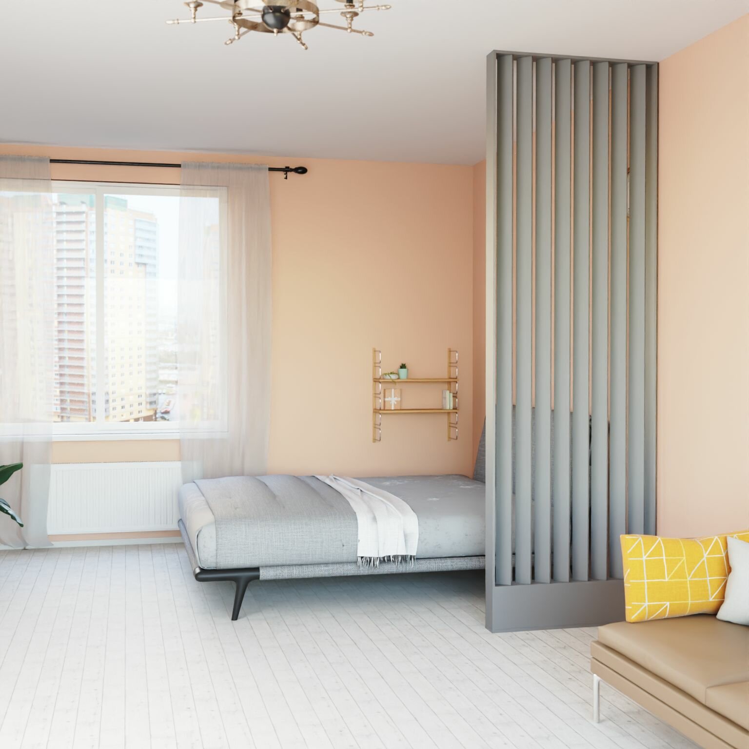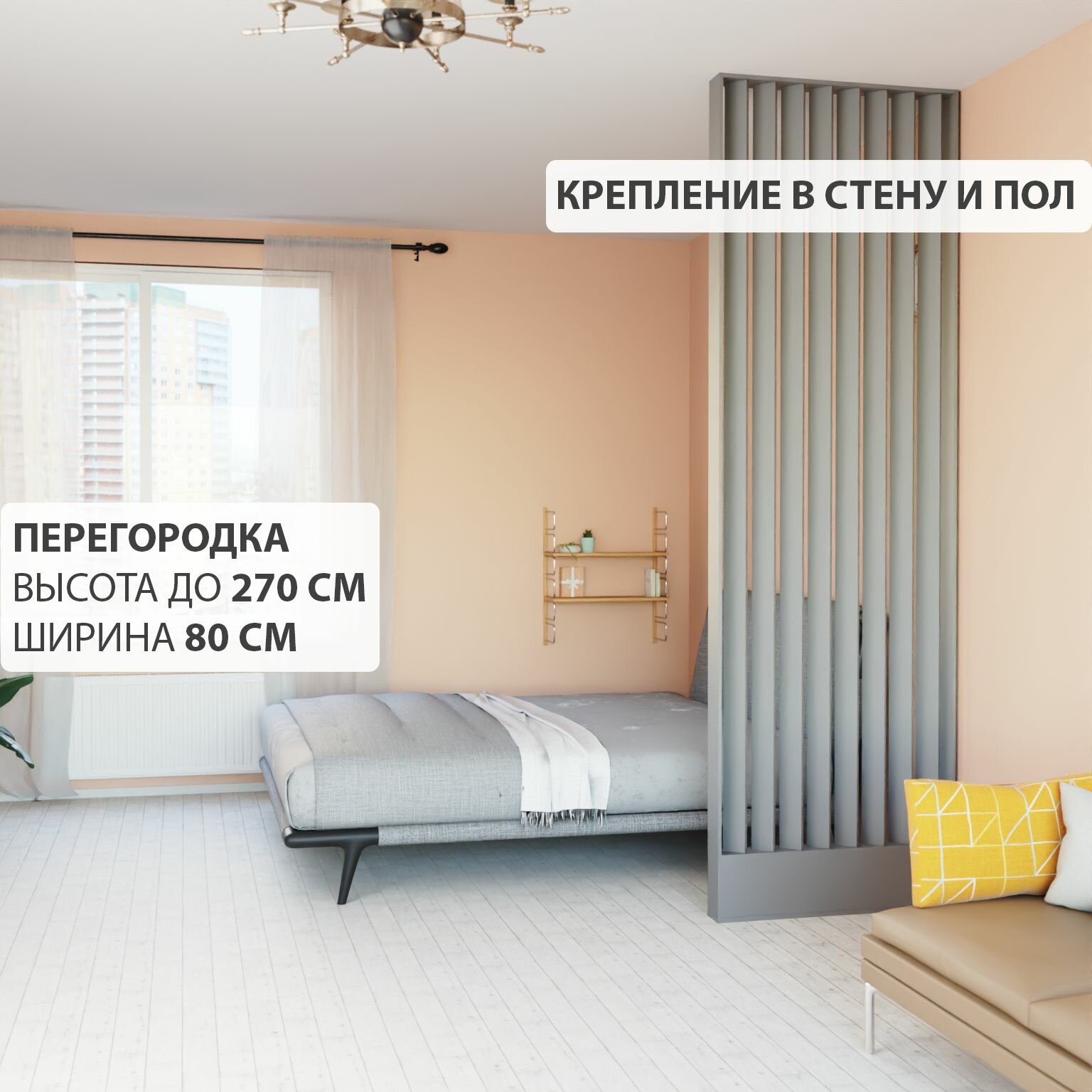 Купить Перегородка реечная для зонирования комнат с натяжными потолками. Перегородка из брусков, реек. Жалюзийная. Крепление стена и пол. Высота до 270 см, ширина 80 см. Цвет графит серый с доставкой по всей России.