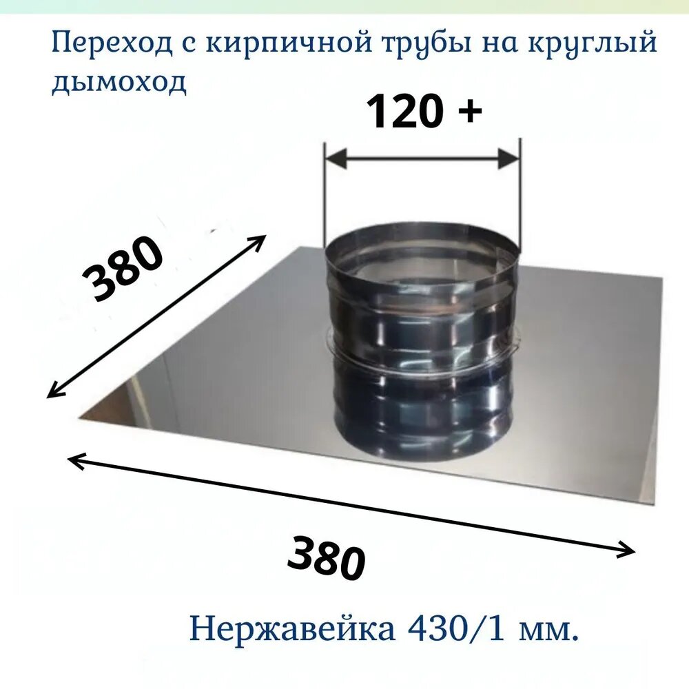 Купить Переход с кирпичной трубы на круглый дымоход Сталь — Мастер Ф120 / нерж 1,0 AISI 430/ 380*380 с доставкой по всей России. Переход с кирпичной трубы на круглый дымоход Сталь — Мастер Ф120 / нерж 1,0 AISI 430/ 380*380: сравнение цен, характеристики, фото, актуальное наличие и цены.