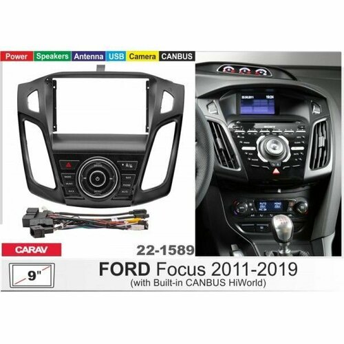 Carav 22-1589 | 9" переходная рамка Ford Focus 2011-2019 (Питание + Динамики + Антенна + Камера + USB + CANBUS)