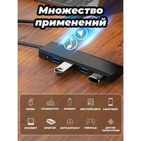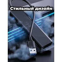 Купить Переходник для Macbook и ноутбука usb Hub 4 в 1 длина 12 см, черный адаптер с доставкой по всей России.