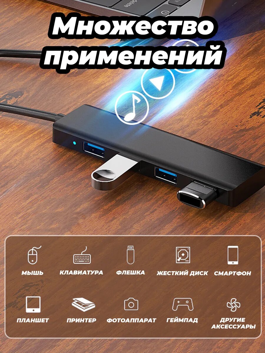 Переходник для Macbook и ноутбука usb Hub 4 в 1 длина 12 см, черный адаптер: сравнение цен, характеристики, фото, актуальное наличие и цены.