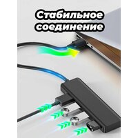 Переходник для Macbook и ноутбука usb Hub 4 в 1 длина 12 см, черный адаптер