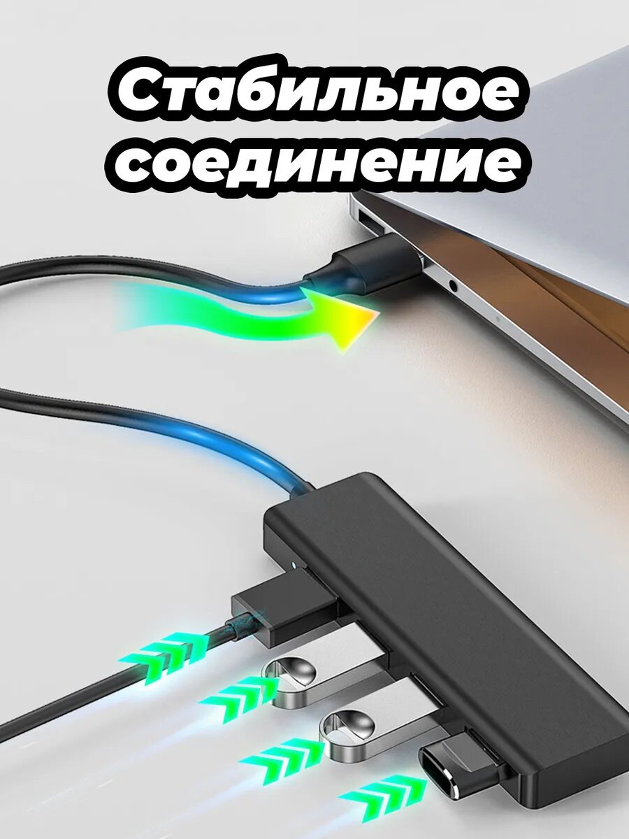 Переходник для Macbook и ноутбука usb Hub 4 в 1 длина 12 см, черный адаптер: сравнение цен, характеристики, фото, актуальное наличие и цены.