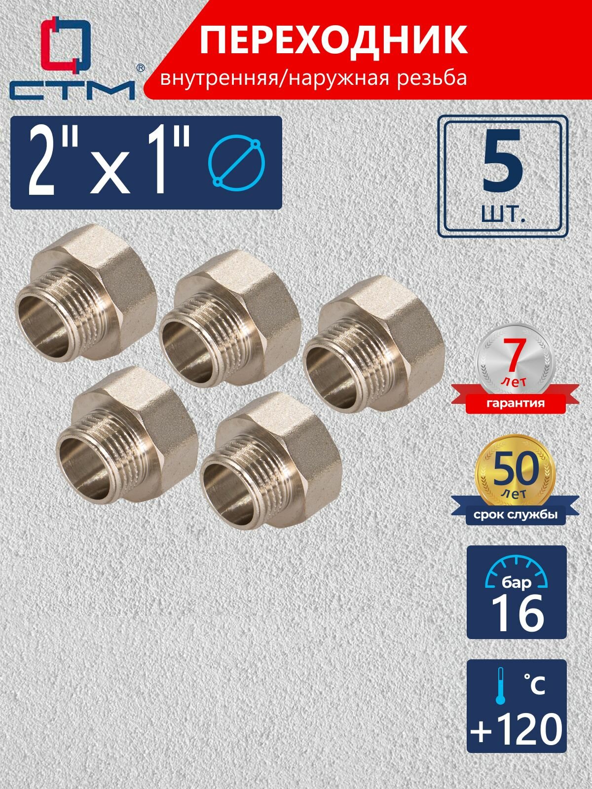 Переходник для труб 2″х1″ внутренняя-наружная резьба СТМ (5 шт.): сравнение цен, характеристики, фото, актуальное наличие и цены.
