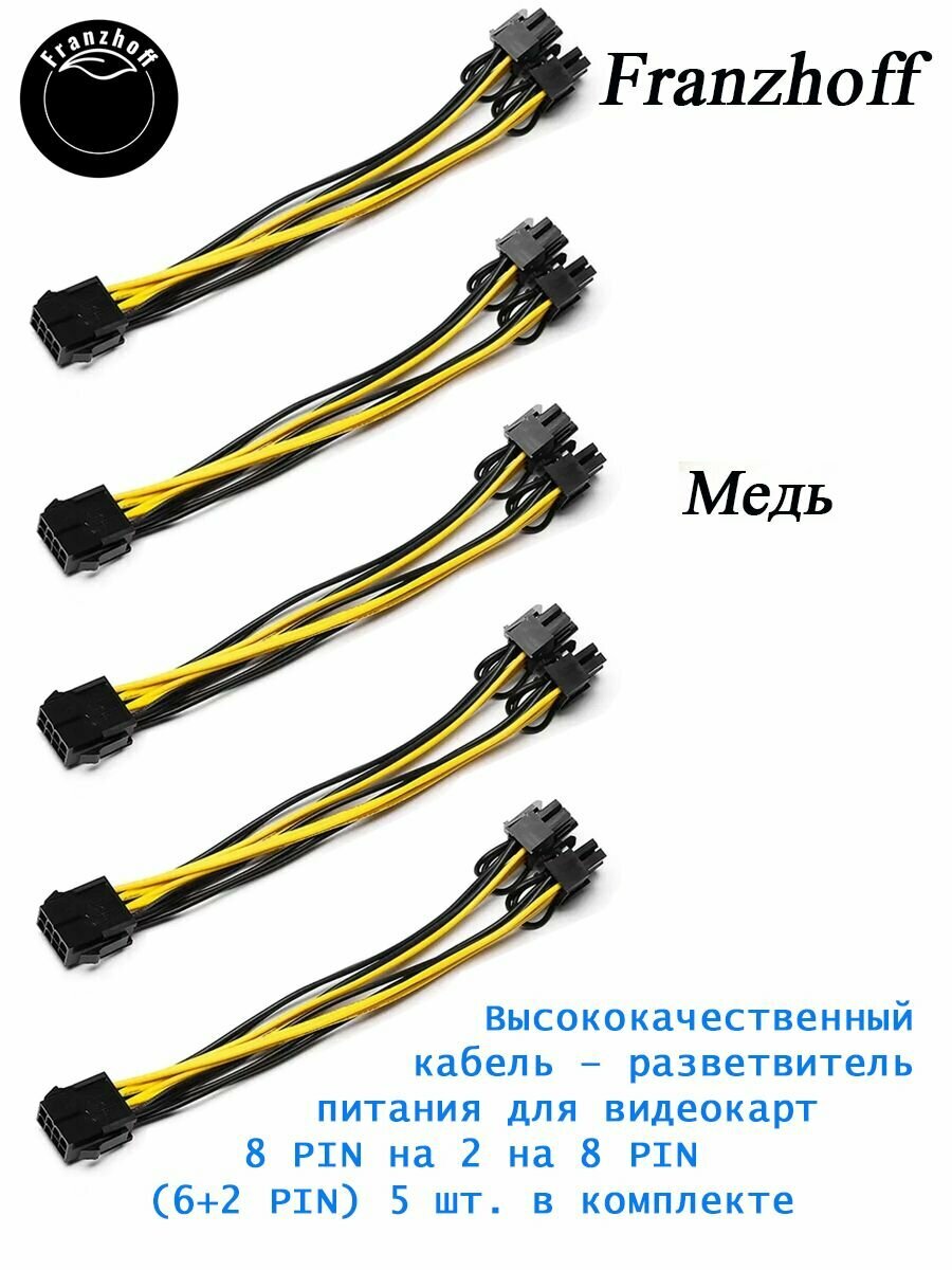 Переходник питания 5 шт. для видеокарт 8 PIN на 2 x 8 PIN (2 + 6 PIN). Кабель удлинитель, разветвитель для видеокарт, для компьютера, 20 см.: сравнение цен, характеристики, фото, актуальное наличие и цены.