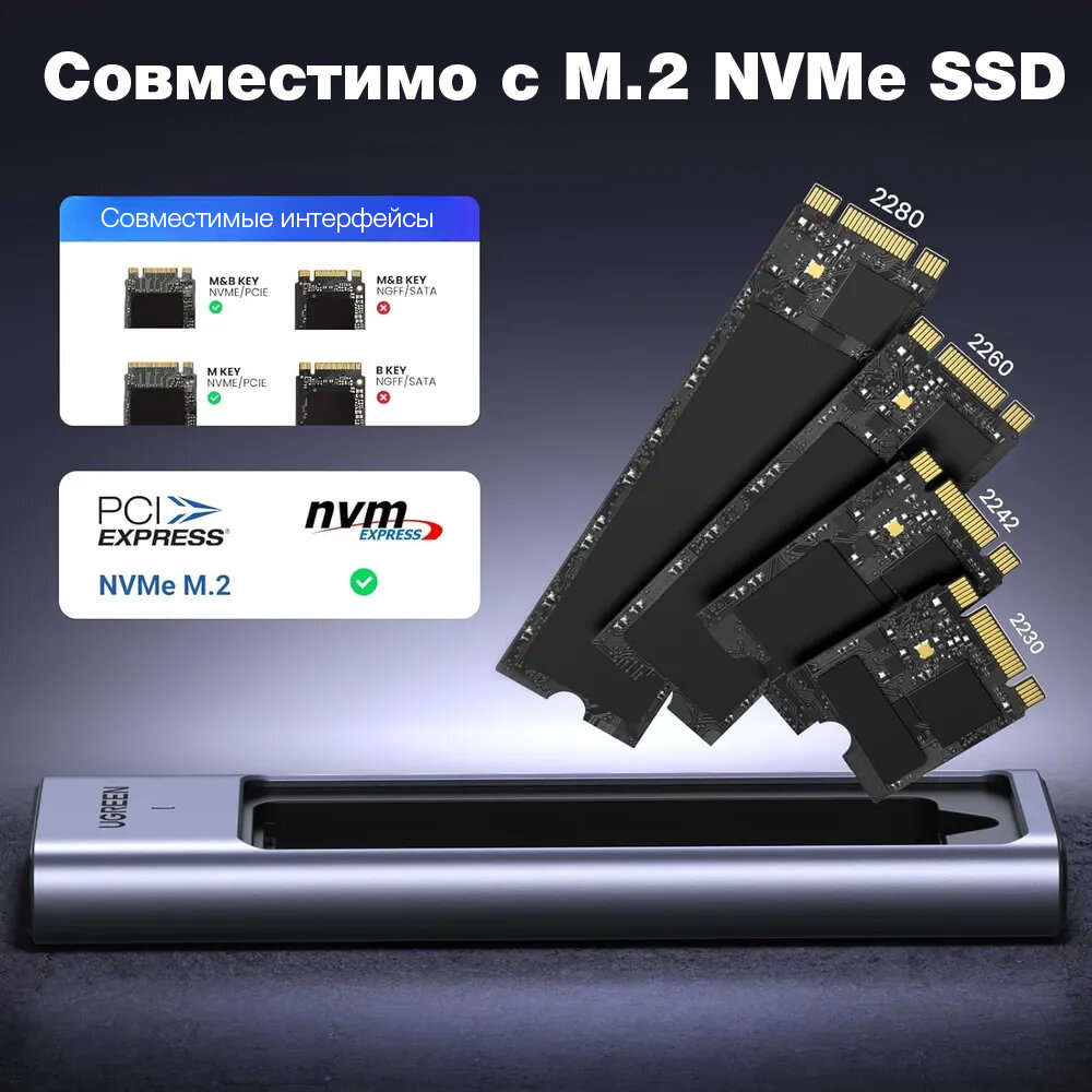 Переходник (внешний бокс) UGREEN M.2 NVMe PCI-E — USB 3.2 Type-C Gen2 Shockproof Box 10 Gbps: сравнение цен, характеристики, фото, актуальное наличие и цены.