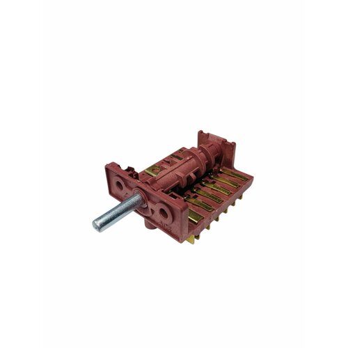 Переключатель для духовых шкафов 7 позиций (6+0). Сила тока 16A при напряжении 250 V. Длина переключателя 58 мм, длина штока 23 мм, ширина переключателя 49 мм.