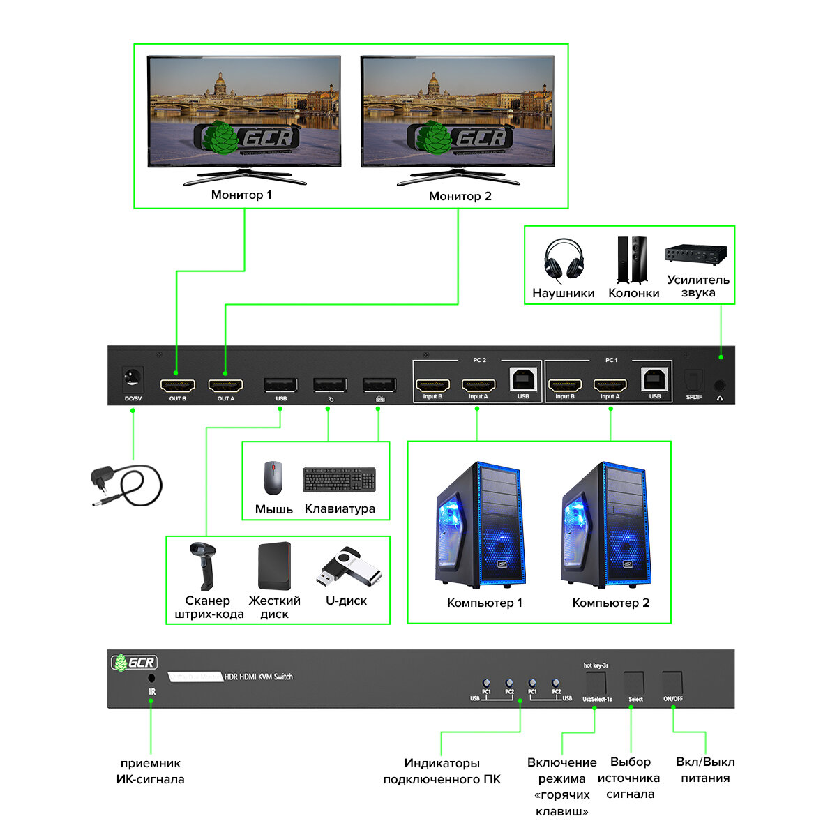 Переключатель KVM HDMI 2.0 2 устройства к 2 мониторам 4K60Hz HDCP 2.2 Hot key & Audio (GCR-v202K) черный: сравнение цен, характеристики, фото, актуальное наличие и цены.