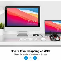 Коммутатор с 4 портами USB 3.0; позволяет двум компьютерам совместно использовать 4 USB-устройства, такие как принтер, мышь, клавиатура или USB-флешка, кардридер, жесткий диск. Порт USB 3.0 поддерживает скорость передачи данных до 5 Гбит/с, что в 10 раз быстрее, чем USB 2.0, и позволяет сэкономить время на ожидании передачи данных. Подключи и играй, драйвер не требуется. 1x 3,5 мм аудиоразъем; легко подключить наушники и динамики с аудиовыходом к ПК. USB KVM-переключатели оснащены портом питания типа C, который можно использовать с зарядным устройством USB C телефона. Переключатель с одной кнопкой; переключение общих USB-устройств между двумя компьютерами осуществляется одной кнопкой, что уменьшает необходимость подключать и отключать USB-устройства. Синий и красный светодиодные индикаторы легко указывают на активный компьютер. Длинный USB-кабель; Этот переключатель USB 3.0 выполнен из высококачественного алюминиевого сплава, прочного и долговечного. Два кабеля USB 3.0 длиной 1,2 метра позволяют расширить USB-порт хоста до рабочего стола, что делает подключение USB более удобным. В комплект входит: 1x switxh 2-4 USB 3.0 2x 1.2 метра USB-кабель 1x руководство пользователя