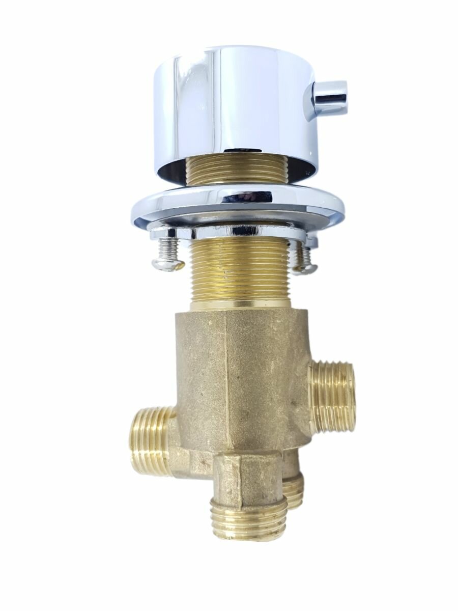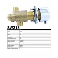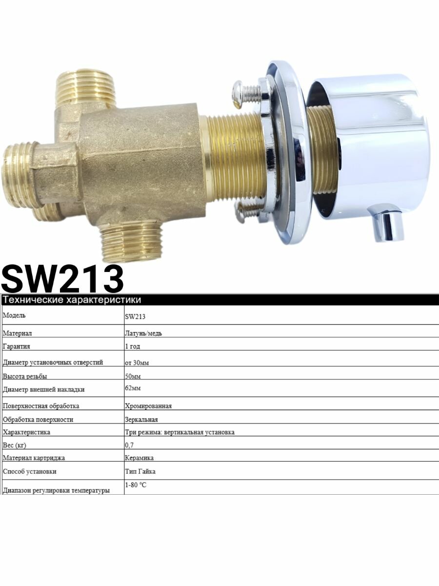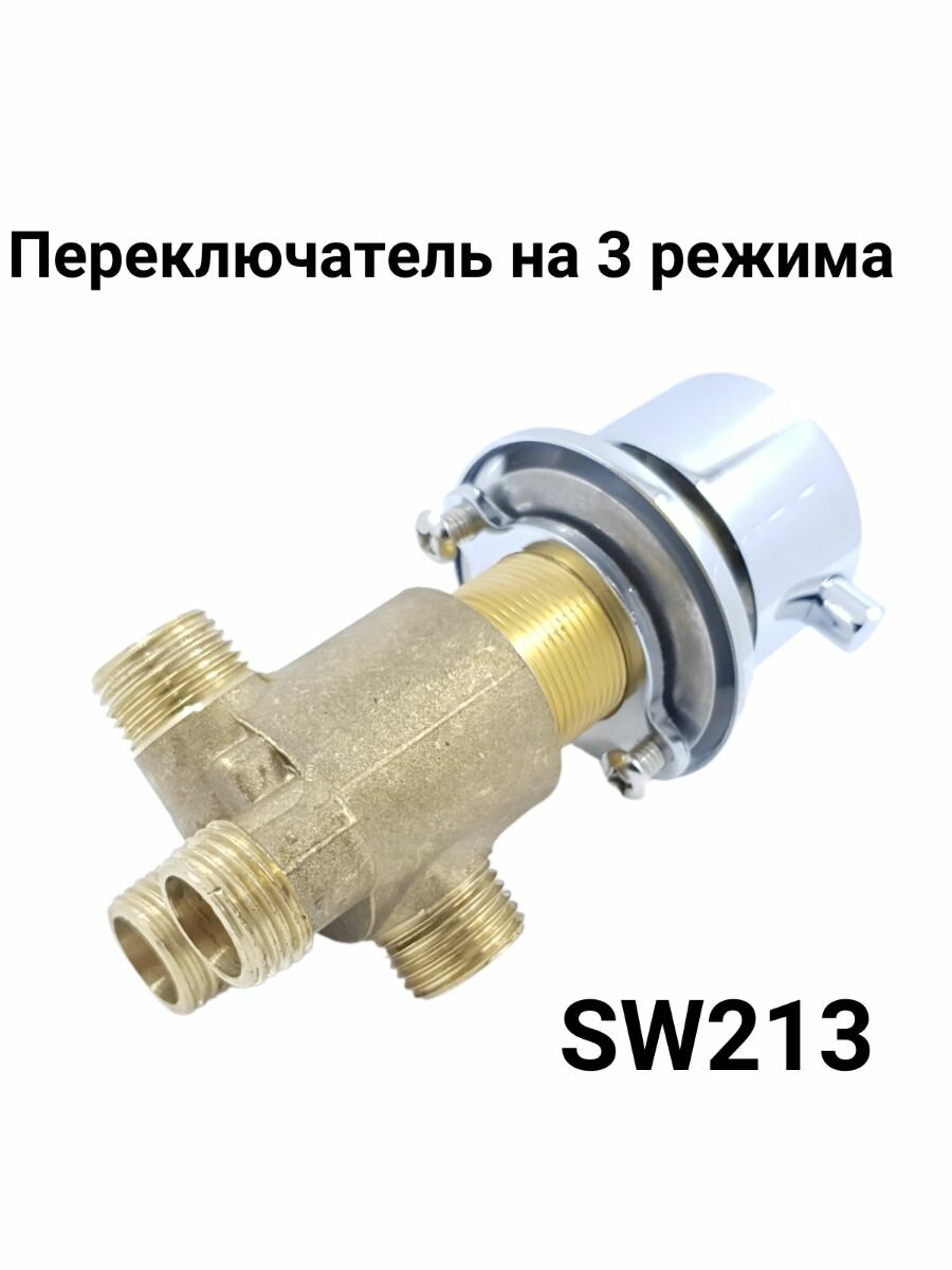 Переключатель SW213 Узел переключения на три потребителя. Посадочный диаметр резьбы (отверстия в ванной) 30мм. Высота резьбы 50мм. Диаметр внешней накладки 62мм. Подключение шлангов 1/2"