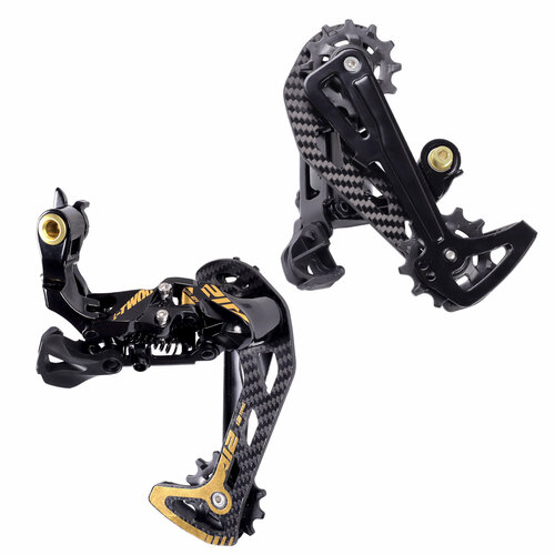 Переключатель задний для 12 ск. L-TWOO A-12G, с золотым ламинированием, максимальная звездочка 52T, общая ёмкость ≤49T.