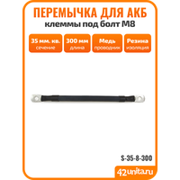 Перемычка гибкая S-35-8-300 изготовлены из изолированного медного кабеля сечением 35 мм. кв. Применяются для соединения нескольких аккумуляторных батарей и подключения их к инверторам и источникам бесперебойного питания.