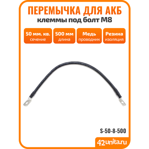 Перемычка гибкая S-50-8-500 изготовлены из изолированного медного кабеля сечением 50 мм. кв. Применяются для соединения нескольких аккумуляторных батарей и подключения их к инверторам и источникам бесперебойного питания.