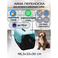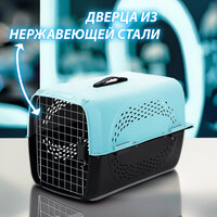 Переноска изготовлена из высококачественного и сверхпрочного полипропилена, снабжена надежными болтами для скрепления корпуса, запираемой нержавеющей дверцей с замком, крепкой и прочной пластиковой ручкой. Это отличный образец изделия, предназначенного для транспортировки животных, который сочетает в себе функциональность, удобство и яркий дизайн. Переноска одобрена Международной Ассоциацией Воздушного Транспорта (IATA).