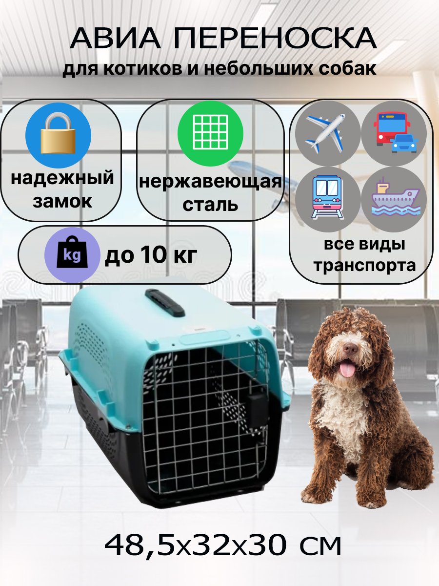 Если Вы любите путешествовать на поезде, машине, самолете, корабле или даже пешком, то данная прочная переноска обеспечит Вам и Вашему питомцу максимальный комфорт. Красивый дизайн и разнообразие цветовых вариантов никого не оставит равнодушным, а крепкая ручка, боковые решетки для циркуляции воздуха, решетка из нержавеющей стали – обеспечат удобство и безопасность. Несложный и в тоже время надежный замок можно легко и быстро закрыть, а вот питомец его отпереть уже не сможет. Изделие просто собирается-разбирается, дверцу можно повесить в любую сторону, а в сложенном виде детали занимают мало места и при необходимости могут использоваться как лежанка. Длительные поездки в авто пройдут гораздо спокойнее, если пристегнуть ее ремнем безопасности.