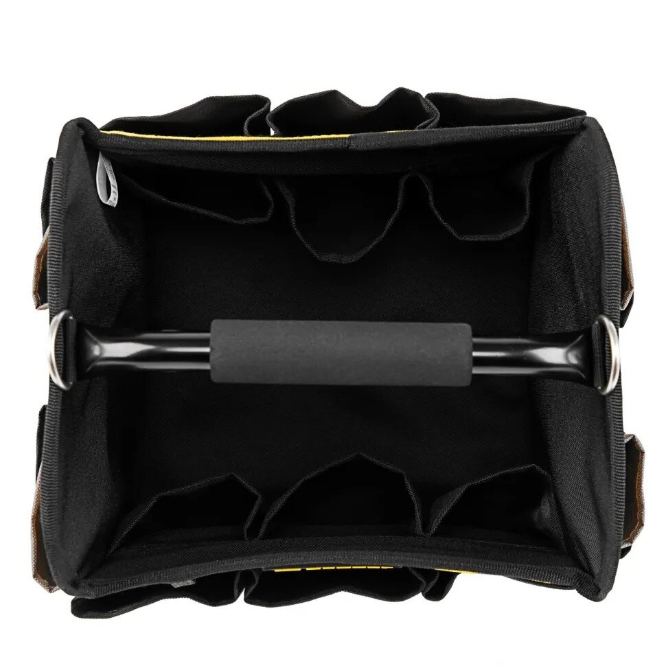 Переноска Denzel 90294 габаритами 260 х 240 х 300 мм, с наплечным ремнем, имеет вместительное основное отделение и 22 кармана. В ней можно разместить ручной и электроинструмент для хранения и транспортировки. Переноска пригодится в дороге, дома или в гараже.