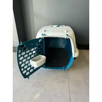 Купить Переноска для кошек «Чистый Котик» с поилкой и сеткой синий, пластик 60x40x42,5 см с доставкой по всей России.