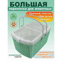 Купить Переноска для кошек и собак большая 47х36х27,5 см пластик, оливковый-серый с доставкой по всей России.