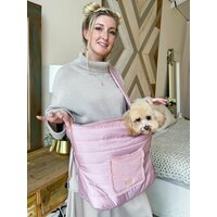 На внешней части слинга расположен карман для вкусняшек и личных вещей. Благодаря ручке "через плечо" вы не будете ощущать вес собаки, так как нагрузка будет распределяться на вашу спину равномерно.