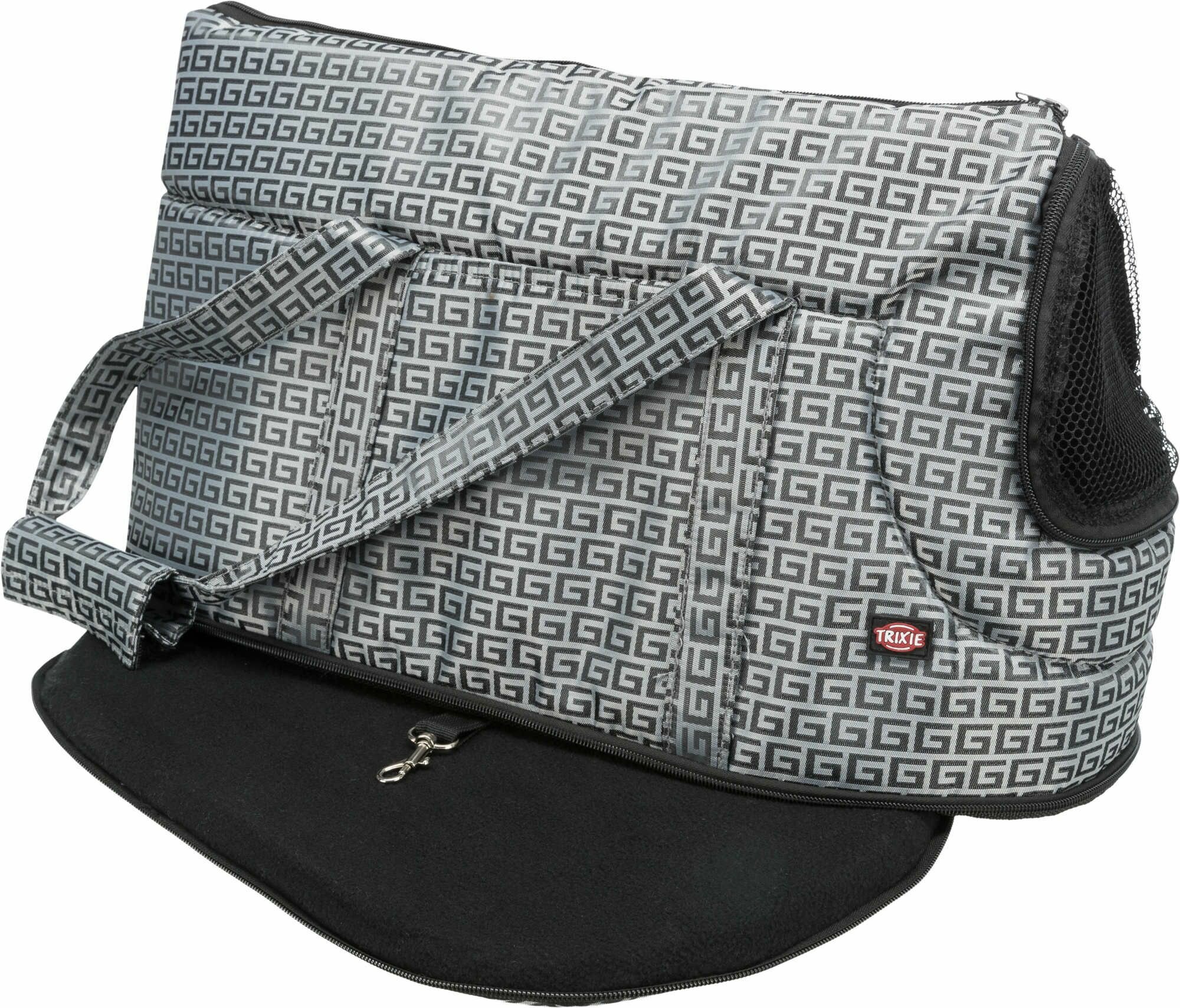 Внутри сумка отделана мягким флисом и для безопасности имеет внутри короткий поводок с карабином для безопасности питомца.