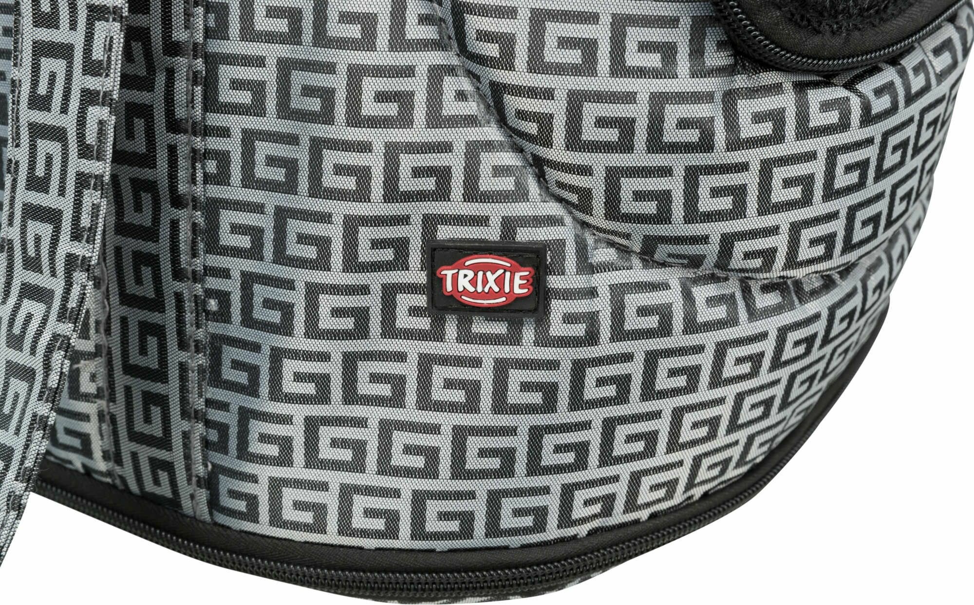 Переснока закрывается свеерху на молнию. В конструкции сумки есть специальное отверстие для головы питомца, который тоже можно закрыть сеткой. Сетка фиксируется молнией