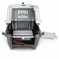 В дно переноски встроен выдвижной лоток для наполнителя, который легко вынимается и очищается. При необходимости лоток можно закрыть крышкой, что предотвращает рассыпание наполнителя по всему пространству.