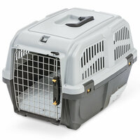 Переноска оборудована современными замками-защелками и надежным замком на дверце, что обеспечивает безопасность питомца во время поездок. Удобная ручка и петли для крепления ремня позволяют выбрать наиболее удобный способ переноски.
