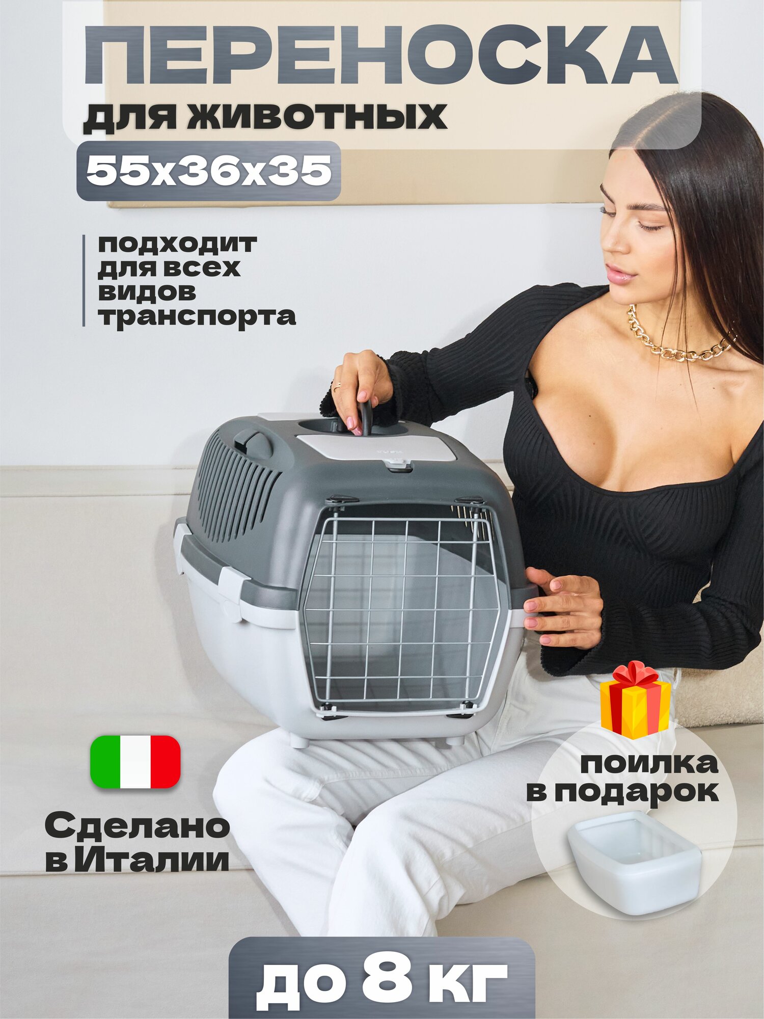 Красивая и лёгкая пластиковая переноска для животных с ручкой и металлической дверкой размером — (55 х 36 х 35 см) европейского бренда Stefanplast из Италии. Изготовлена из качественных комплектующих с учетом всех требований и маркировок для авиа и ЖД перевозок. Переноска подходит для транспортировки кошек и собак мелких и крупных пород. Применима для многочасовых перевозок, как в салоне вашего автомобиля, так и в багажном отделении. Крепкая конструкция с вентиляционными отверстиями легко моется и не впитывает неприятные запахи. Сверху расположено отверстие с крышкой для кормления, в которое поместится рука, игрушки и корм. Надежные замки-защелки на двери обеспечат безопасность питомца в непредвиденных ситуациях, не сбежит даже самый активный питомец. Также конструкция оснащена прорезями для автомобильного ремня, чтобы она не перемещалась по салону. Дверца открывается в обе стороны, а также снимается. Конструкция выполнена из качественного толстого пластика и усиленная надежными крепежами, данная модель размером 55 х 36 х 35 см выдерживает до 8 кг. Легко собрать и разобрать. Внутренние размеры переноски 51.5 х 32.5 х 30 см.