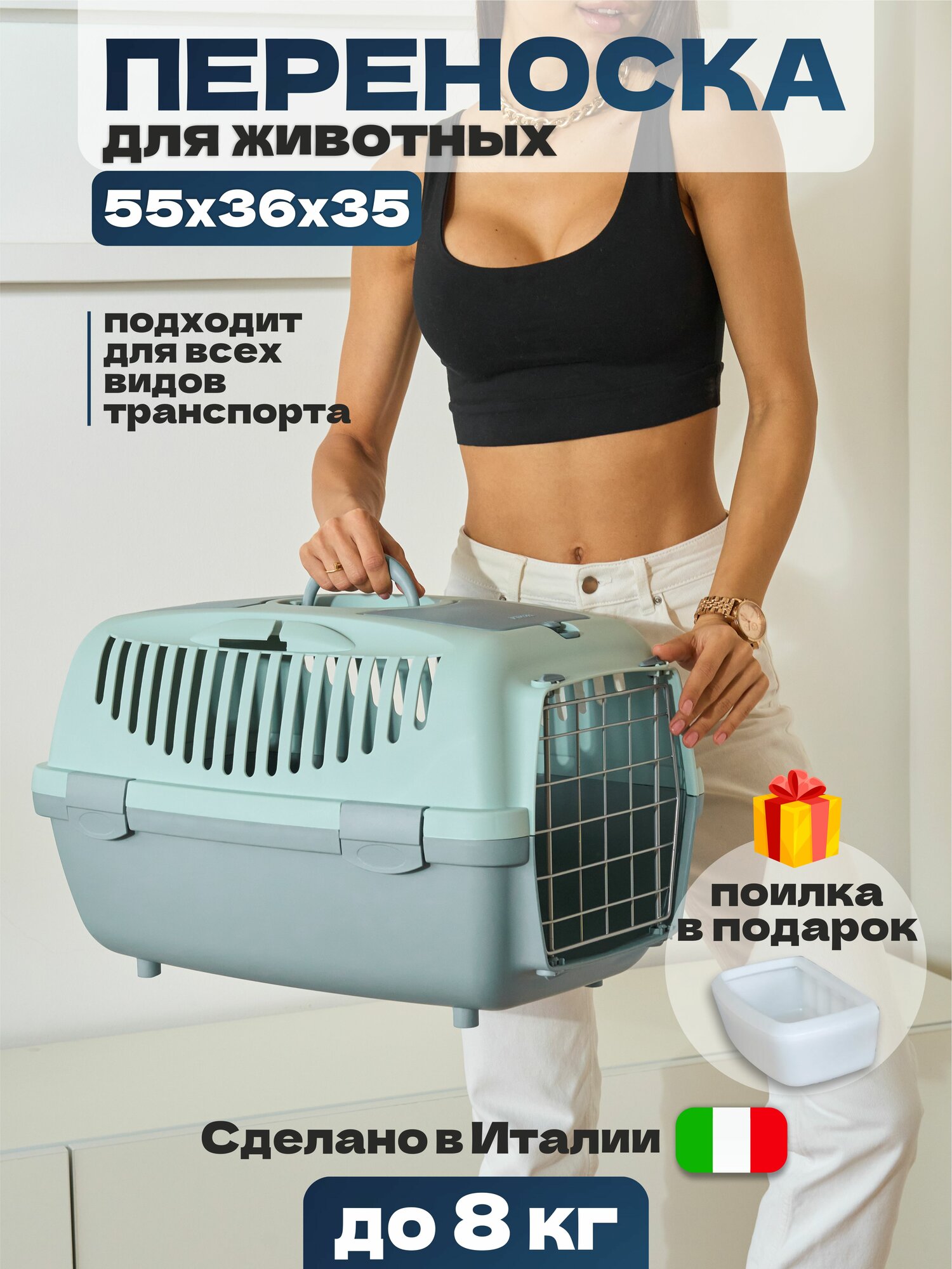 Красивая и лёгкая пластиковая переноска для животных с ручкой и металлической дверкой размером — (55 х 36 х 35 см) европейского бренда Stefanplast из Италии. Изготовлена из качественных комплектующих с учетом всех требований и маркировок для авиа и ЖД перевозок. Переноска подходит для транспортировки кошек и собак мелких и крупных пород. Применима для многочасовых перевозок, как в салоне вашего автомобиля, так и в багажном отделении. Крепкая конструкция с вентиляционными отверстиями легко моется и не впитывает неприятные запахи. Сверху расположено отверстие с крышкой для кормления, в которое поместится рука, игрушки и корм. Надежные замки-защелки на двери обеспечат безопасность питомца в непредвиденных ситуациях, не сбежит даже самый активный питомец. Также конструкция оснащена прорезями для автомобильного ремня, чтобы она не перемещалась по салону. Дверца открывается в обе стороны, а также снимается. Конструкция выполнена из качественного толстого пластика и усиленная надежными крепежами, данная модель размером 55 х 36 х 35 см выдерживает до 8 кг. Легко собрать и разобрать. Внутренние размеры переноски 51.5 х 32.5 х 30 см.